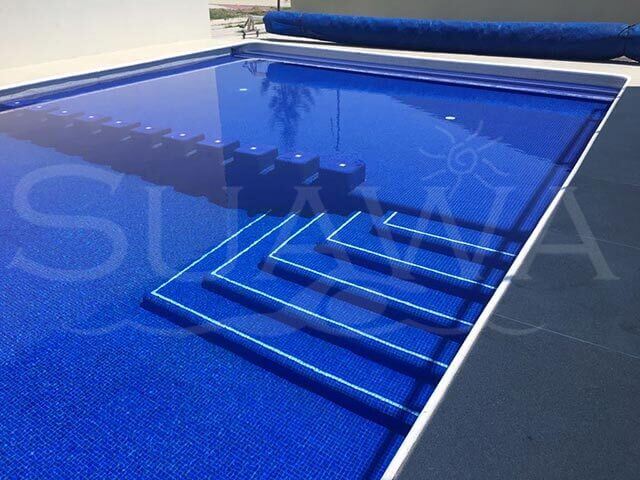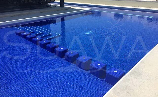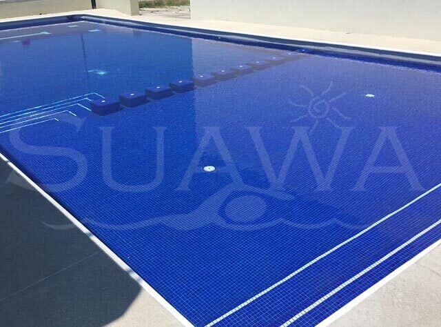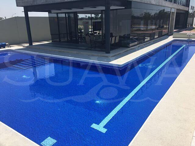 GALERÍA » Alberca tipo Comercial Piscina tipo comercial. Medidas en escuadra de 3.00 x 21.00 m. de largo para formar un carril de nado y 9.00 x 7.00 en zona profunda incluido un chapoteadero en el lado contrario.
