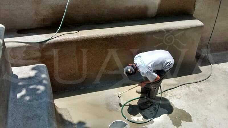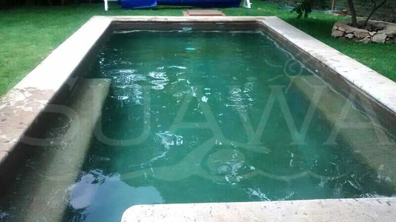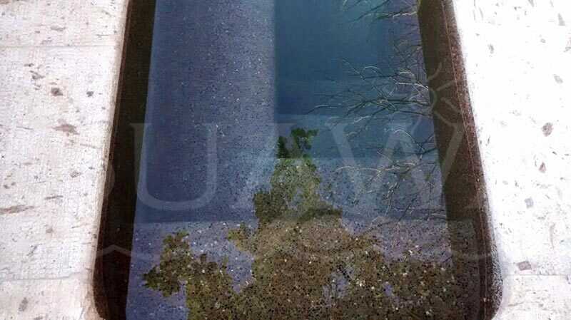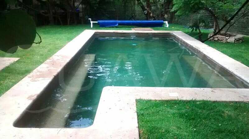 GALERÍA » Piscina Verde Construcción de piscina residencial con acabado simulando el color de agua de un cenote.