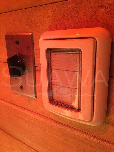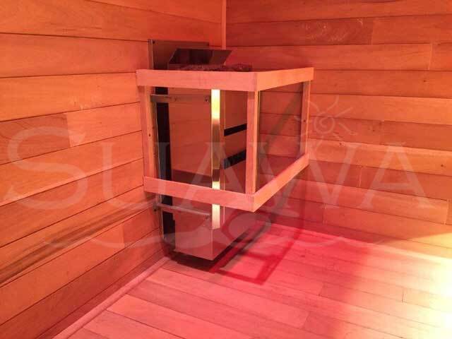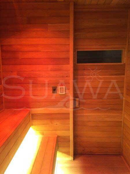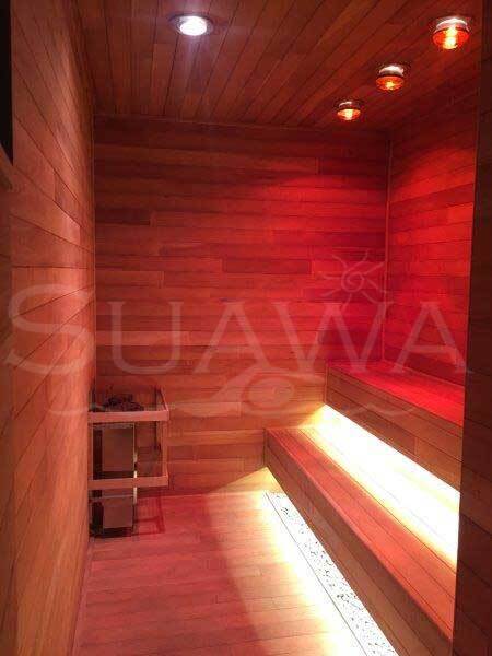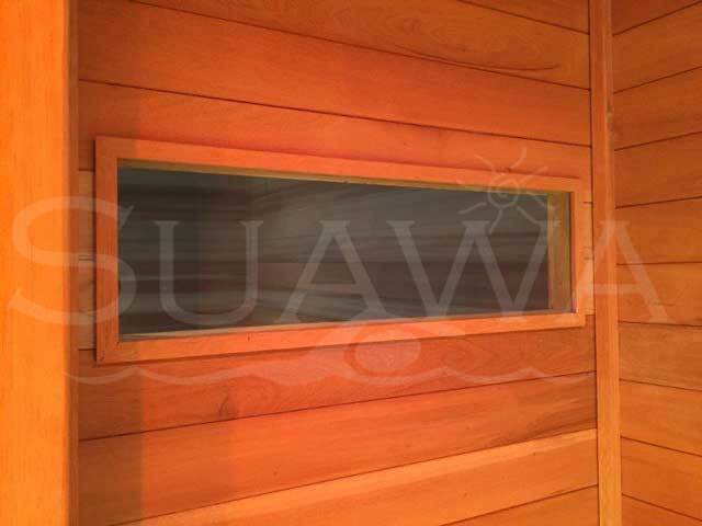 Instalación de Baño Sauna de madera machimbrada de cedro y caoba.